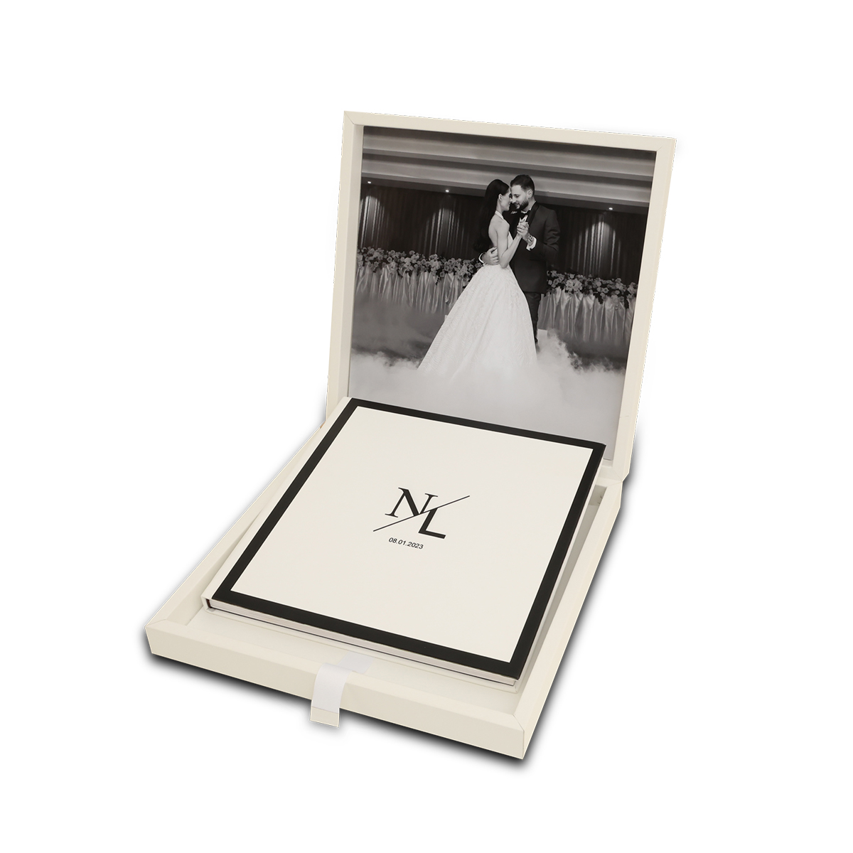 Modern Italian leatherette box that can be combined with multi choices of album covers whether linen, velvet or leather, as per the client request.